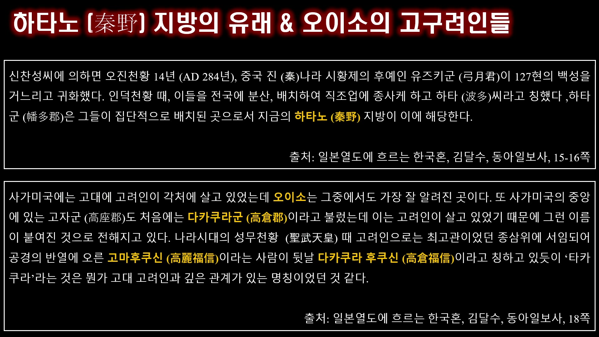 규슈뿐 아니라 관동, 간사이 등 본주 깊숙이까지 한반도 도래인의 신사·지명·유물이 존재.