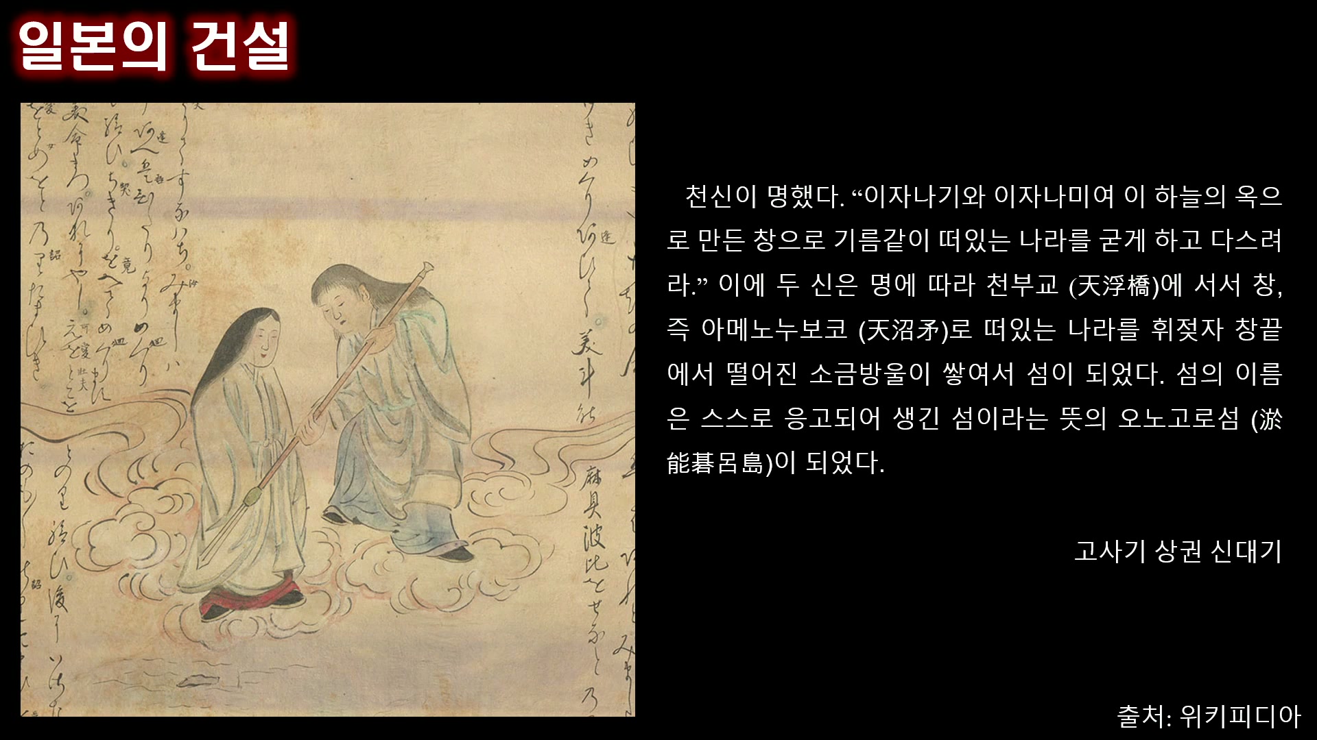 일본 시조신 이자나기/이자나미가 한반도 가야 출신 도래인이었으며, 천황가의 뿌리가 중앙아시아 파미르고원의 샤머니즘 전통까지 거슬러 올라간다는 주장. 만세일계가 아닌 가야계→백제계→신라계 혈통 교체를 주장.