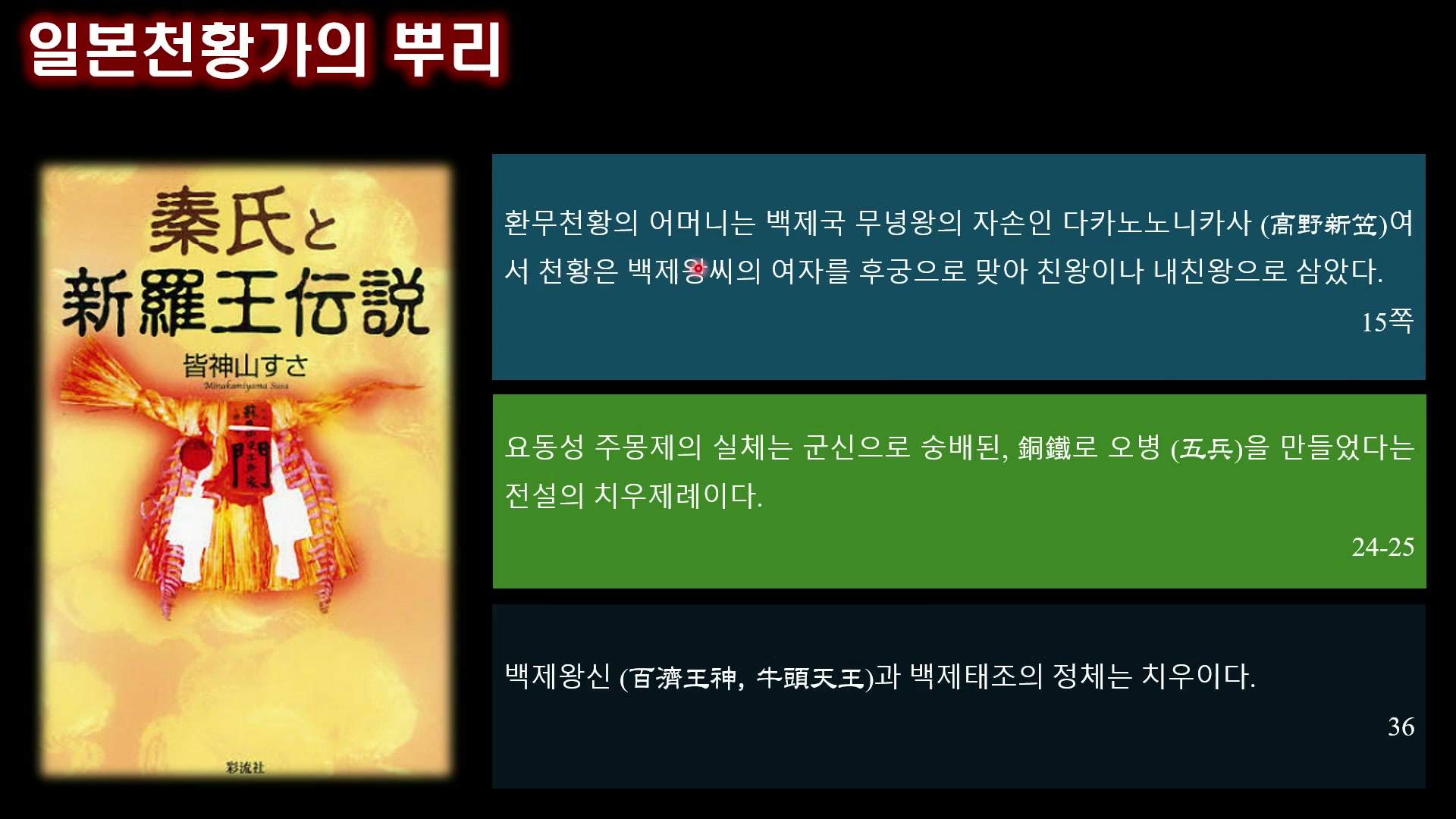 일본 천황가가 대륙(한반도·중국) 진출을 꿈꿔온 역사적 배경을 추적. 저서 「샤먼 바이블」 소개와 함께 천황가의 대륙 회귀 열망이 근대 일본의 제국주의로 이어진 과정을 분석.